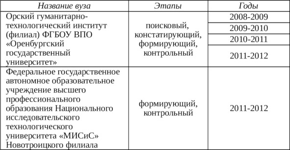 В Таблице 1.3.2. и 1.3.4. представлена информация об участниках экспериментальной проверки эффективности системы формирования профессиональной компетентности будущих инженеров в процессе изучения физики, обучавшихся по ГОС ВПО 2009 г. направления подготовки дипломированного специалиста (2008—2011) и ФГОС ВПО 2010 г. по направлению подготовки бакалавра (2011—2012).