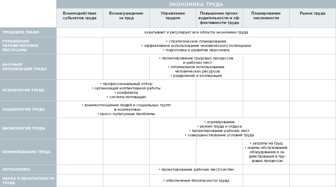 Экономика труда тесно связана с другими дисциплинами системы наук о труде.