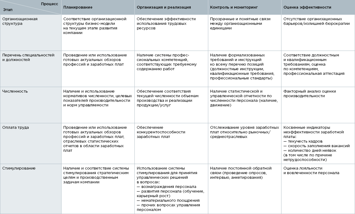 Таблица 2. Критерии оценки зрелости процессов на этапах построения системы экономики труда