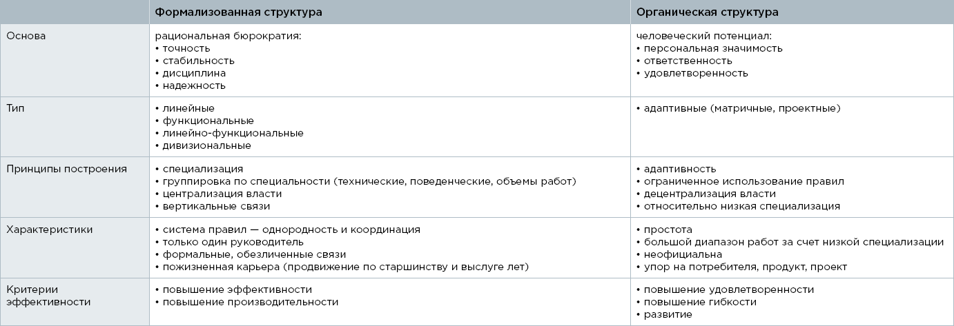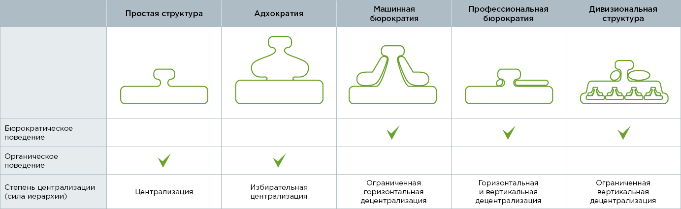 Каждая из составных частей влияет на организацию и доминирует в определенном типе структуры.