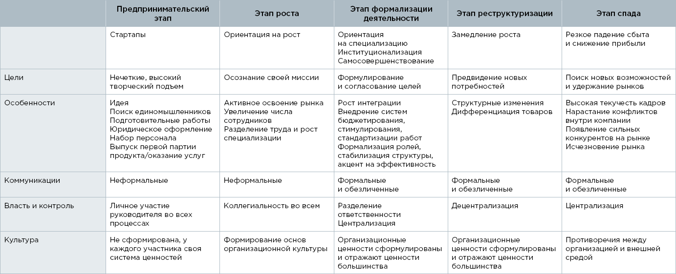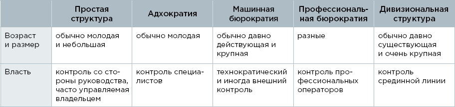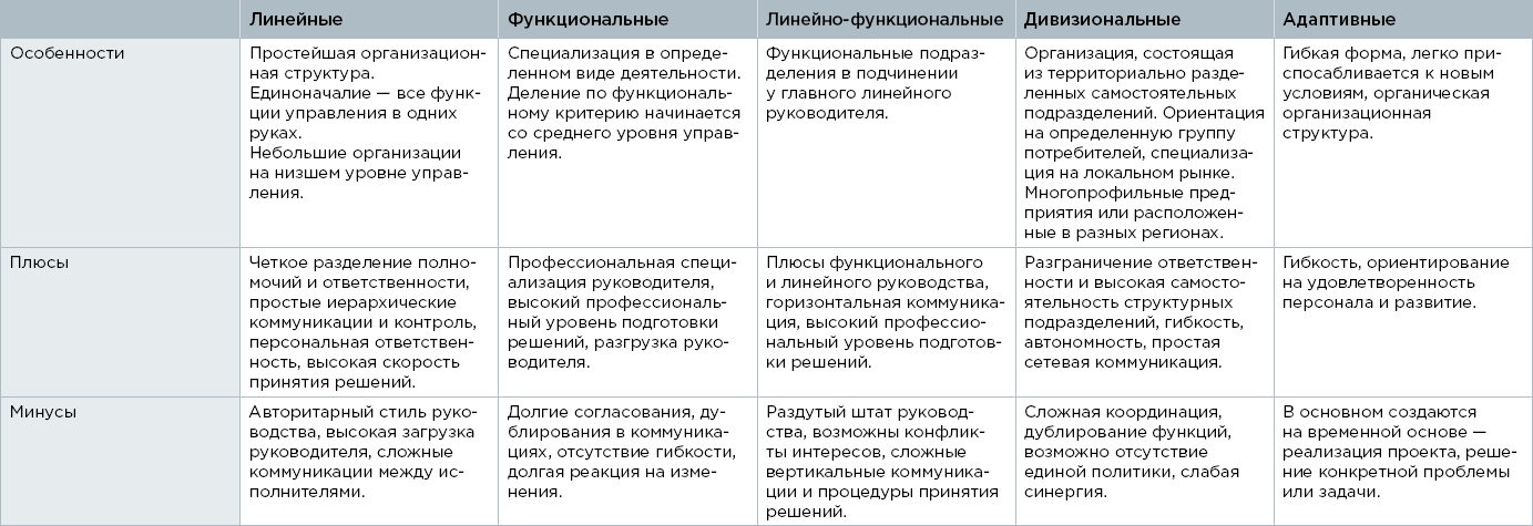 Таблица 4. Особенности, плюсы и минусы пяти типов организационных структур