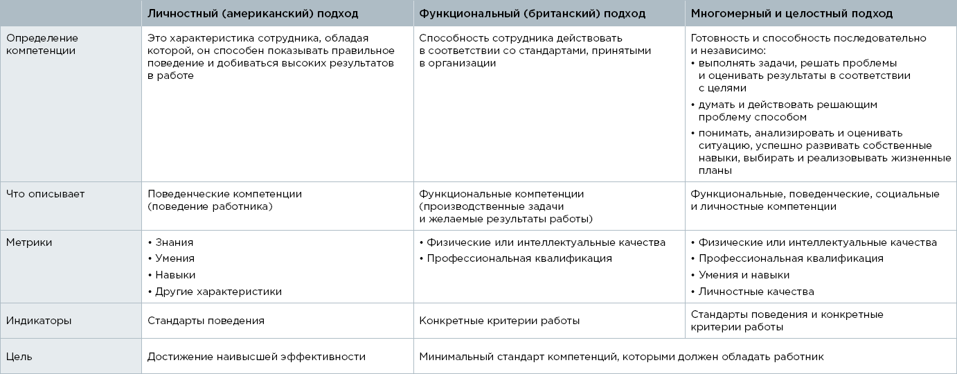 Таблица 13. Существует три подхода в использовании профессиональных компетенций