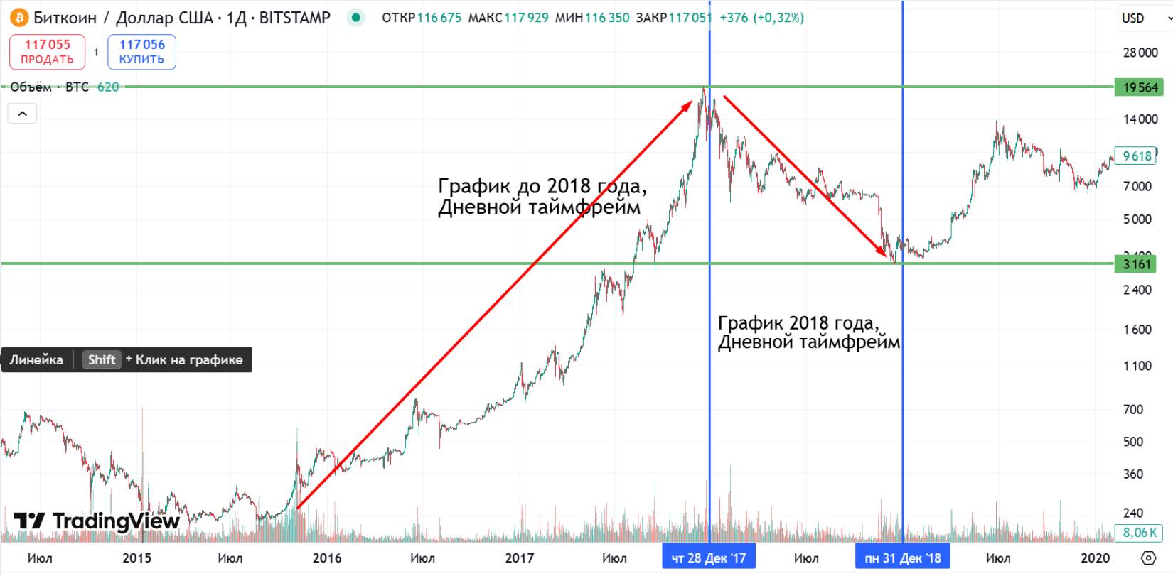 Рисунок 8 Обвал Биткоина в 2018 года почти до $3000