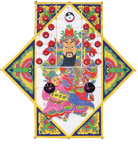Вэйфанская школа существует уже не первую сотню лет – профессиональные мастера изготавливали здесь змеев еще при цинском императоре Цяньлуне[12] (1735–1796). Вэйфанские змеи отличаются глубиной и контрастностью цветового оформления, цельностью композиции и свободой в выборе узоров. Особенностью изделий этой школы является также сочетание традиционной технологии изготовления воздушных змеев с техникой создания новогодних лубочных картинок няньхуа.