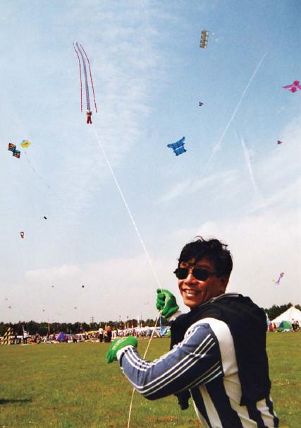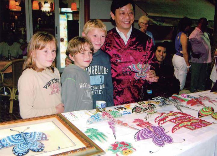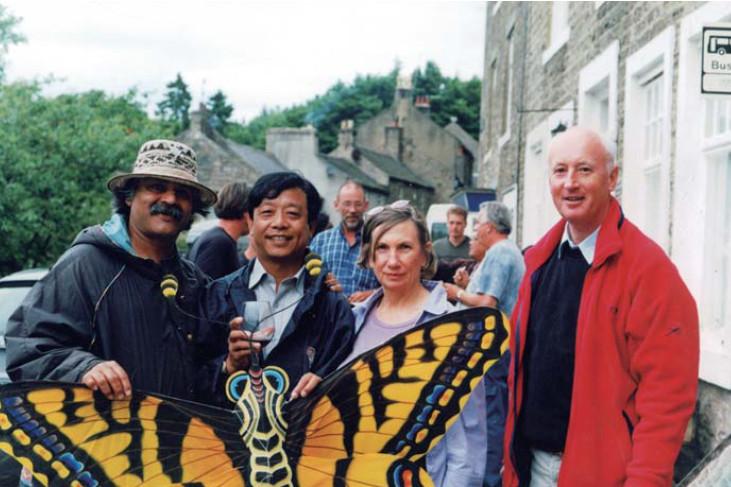 Ха Ици, хранитель ремесленных традиций рода Ха, с любителями воздушных змеев на фестивале воздушных змеев в г. Сандерленд (Великобритания)