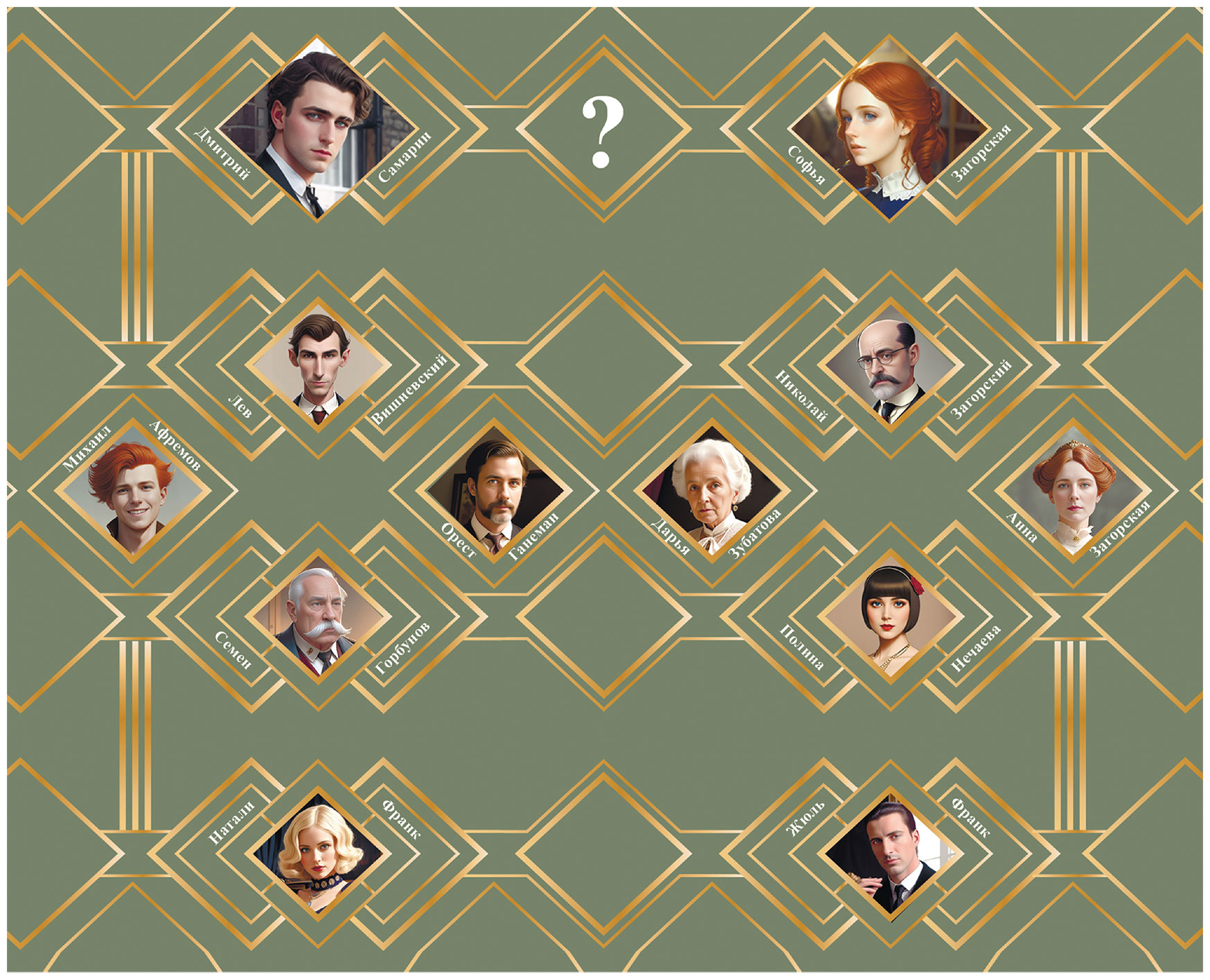 Вся остальная семья Загорских уже была за столом. Папа, Николай Сергеевич, как обычно, спрятался за газетой «Биржевые ведомости». Мама, Анна Петровна, указывала кухарке Варваре, как изящнее расставить розетки с вареньями. Младший брат Лёлик (он же Алексей) вяло ковырял в тарелке кашу.