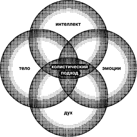 Посмотри на иллюстрацию на следующей странице: я – горячий сторонник этого подхода. Он называется холистический или целостный и может применяться в любой сфере жизни. Главное в нем – взаимосвязь и единство всех составляющих и то, что любой компонент влияет на целое – и наоборот. Если проблема здоровья состоит, к примеру, в опущении органов малого таза, то нужно проверять мышцы и связки вокруг этих органов, и еще много чего: сосуды, позвоночник, а также образ жизни, ведь что-то привело к опущению?