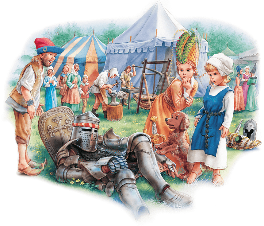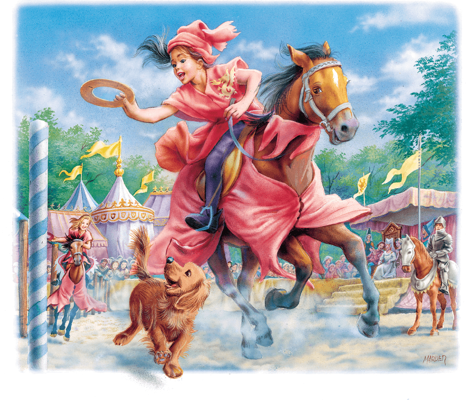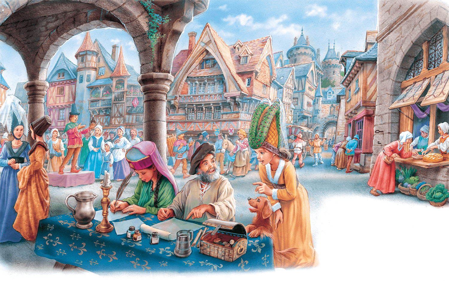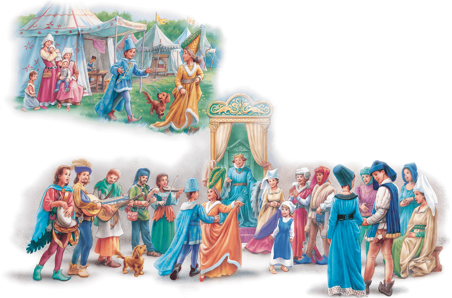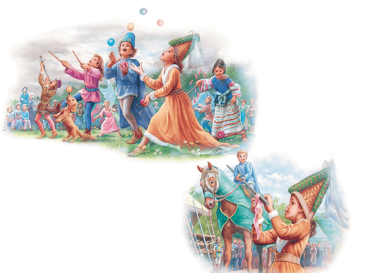 Привет! Меня зовут Маруся. Я живу в старинном городке. У нас тут сохранились и толстые крепостные стены старого города с башнями, и дома с черепичными крышами, совсем как в волшебных сказках. Каждый год в последнее воскресенье лета на центральной площади проходит большой карнавал. На один день все жители переселяются в далёкую старину, превращаются в рыцарей, принцесс, средневековых мастеров, стрелков из лука… Вот и в этом году мы всей семьёй, с друзьями и соседями отправимся на карнавал!