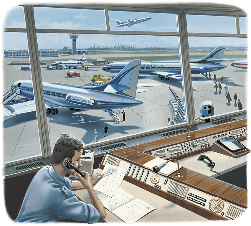 Он управляет взлётом и посадкой, поддерживает радиосвязь с экипажем во время полёта.
