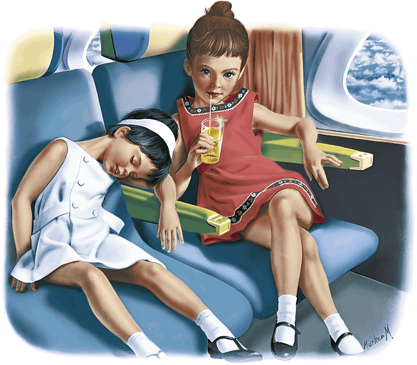 В самолёте очень удобные кресла. На подлокотнике две кнопочки. Нажмёшь одну – откинется спинка, можно прилечь и подремать.