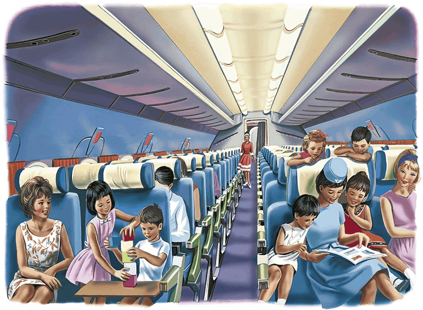 «Экипаж нашего лайнера желает вам приятного полёта!» – говорит стюардесса по радио.
