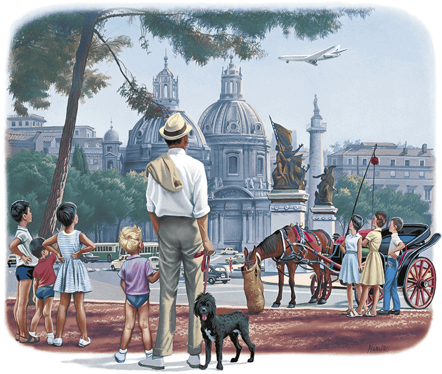 – Представь себе, – вдруг говорит мне мама, – что где-нибудь на римской улице прохожие глядят на наш самолёт. И дети, которые ещё никогда не летали, очень хотели бы очутиться на нашем месте.