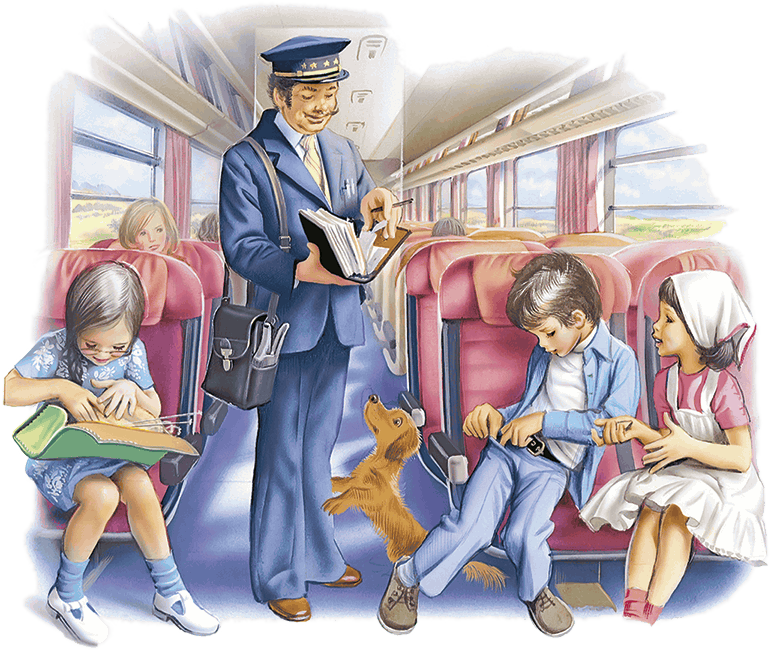 Это проходит по вагонам контролёр. Пассажиры показывают ему свои билеты, а он в них пробивает дырочки особыми щипцами.