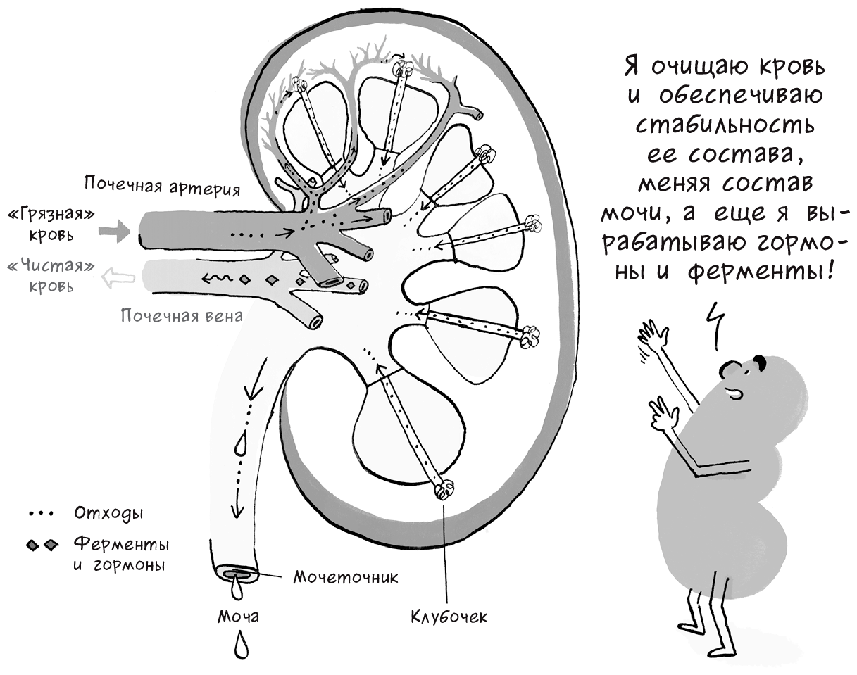 И это еще не все! Я синтезирую гормон эритропоэтин, или ЭПО, стимулирующий образование эритроцитов в костном мозге. Все люди, которым проводится диализ, получают лечение эритропоэтином. Мои коллеги – больные почки перестают выделять его в нужном количестве, и образуется недостаточно эритроцитов. Без такой терапии их человеку пришлось бы делать регулярные переливания крови. Это тот самый ЭПО, который в погоне за высокими результатами используют спортсмены, чтобы улучшить свои показатели. И совершают ужасную ошибку: у них увеличивается риск развития сердечно-сосудистых заболеваний.