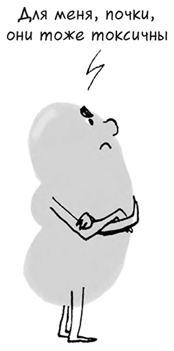 Креатинин. Поступает в кровь из мышц, а затем исключительно моими усилиями выводится с мочой. Так что, если вы хотите узнать, все ли со мной нормально, вы можете проверить уровень креатинина в крови. Если он повышен, у вас почечная недостаточность, это значит, что я недостаточно хорошо очищаю вашу кровь и произвожу гормоны. Без паники, позже я расскажу, как меня защитить. Мне очень повезло: я единственный орган (помимо Николя), который выводит продукт своей деятельности наружу. Ни мозг, ни сердце не мочатся. Конечно, есть кал Николя, но его не так просто изучать. Моя моча очень информативна и позволяет узнать, здоров ли я, например проверив наличие альбумина, который в норме отсутствует. Этот белок слишком крупный и попадает из крови в мочу, только если мои артерии повреждены, – это называется альбуминурия («-емия» означает «в крови», «-урия» значит «в моче»).