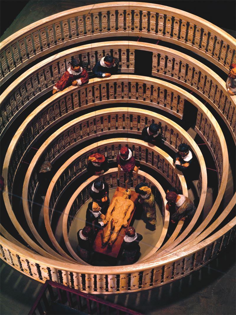 10. Макет анатомического театра, Падуя, 1594 г. На секционном столе лежит труп в окружении профессиональных анатомов, ученики наблюдают за вскрытием с многоярусных балконов