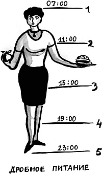 Людям всех возрастов целесообразно принимать пищу меньшими порциями, но чаще, оптимально – пять раз в день. Для пенсионеров подобный режим не составляет проблем. В промежутках между тремя главными приемами пищи следует устраивать чаепитие с бутербродом. В Великобритании это стало нормой для многих предприятий, учреждений и офисов. В течение рабочего дня уже больше ста лет существует три перерыва: 30 минут на ленч и два по 15 минут на чай и кофе. Обоснованием для внедрения такой системы была не забота о здоровье работников, а повышение производительности труда. Большинство работ в настоящее время имеет рутинный, однообразный характер. Работа клерка в банке или в страховой компании и работа водителя автобуса может оказаться не менее утомительной, чем работа строительного рабочего, независимо от расхода калорий. Более частые перерывы на еду помогают не только поддержать равномерность концентрации глюкозы в крови, но и обеспечивают психологическую разрядку и концентрацию внимания, важную для множества современных профессий.