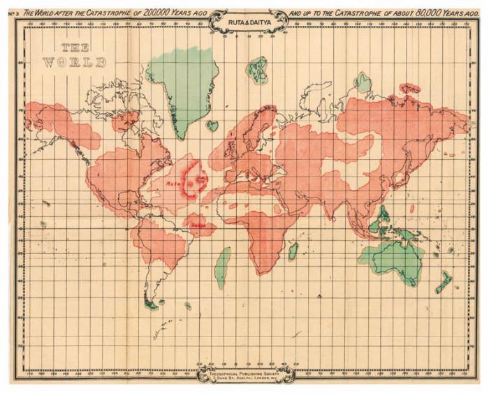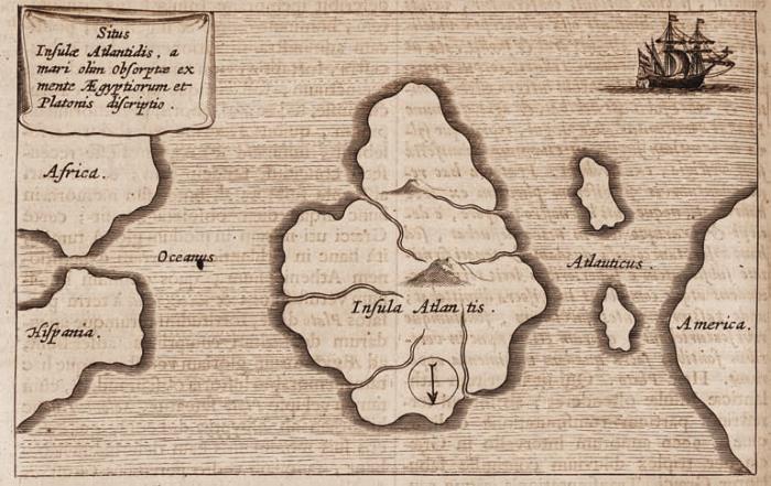 Карта с изображением островов Рута и Даития, на которые, по легенде, раскололась Атлантида в результате одной из катастроф.