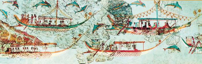 Фреска с изображением кораблей из Акротири. Крито-минойская цивилизация.