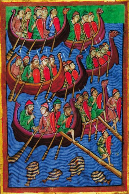 Флот викингов. Миниатюра из английского манускрипта Житие святого Эдмунда. Ок. 1130