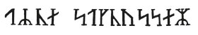 Дядюшка поднял повыше очки, взял сильную лупу и тщательно просмотрел первые страницы книги. На обороте второй страницы он открыл что-то вроде пятна, похожего на чернильную кляксу; но, вглядевшись попристальнее, можно было различить несколько наполовину стертых знаков. Дядя понял, что именно на это место надо обратить наибольшее внимание; он принялся чрезвычайно старательно рассматривать его и разглядел наконец с помощью своей лупы следующие рунические письмена, которые смог прочесть без затруднения: