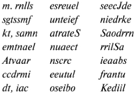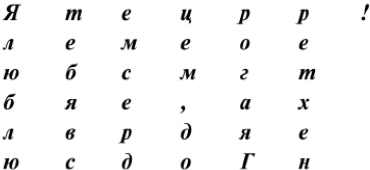 Он начал диктовать. Я прилагал все свои старания, чтобы не ошибиться. Он называл одну букву за другой, и, таким образом, последовательно составлялась таблица непостижимых слов: