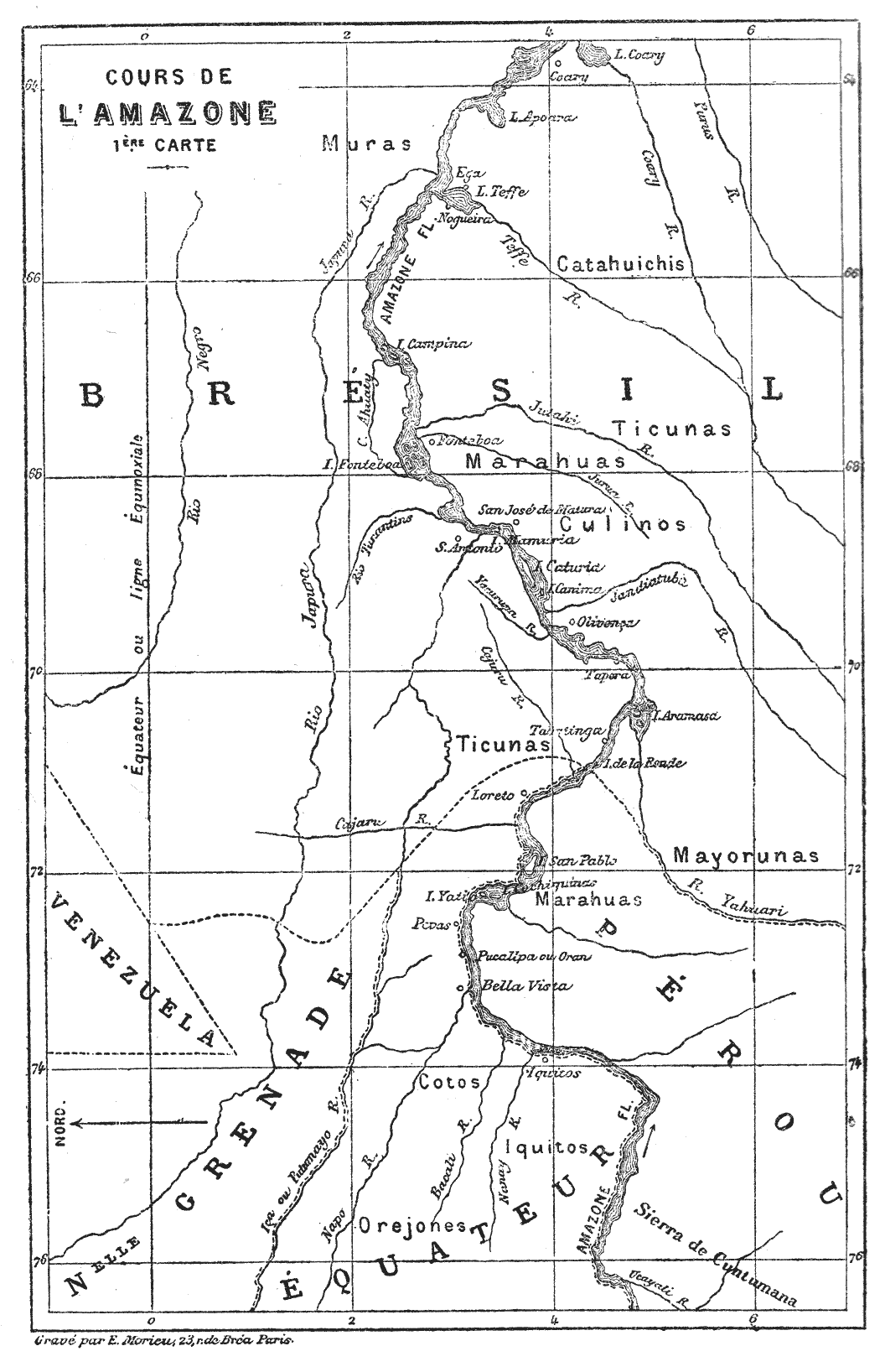 Как бы то ни было, но в этот день – 4 мая 1852 года – наш искатель приключений был либо слишком поглощен чтением документа, который держал перед глазами, либо, привыкнув бродить по южноамериканским лесам, оставался совершенно равнодушен к их красотам. И верно, ничто не могло отвлечь Торреса от его занятия: ни громкие вопли обезьян-ревунов, которые Сент-Илер[4] удачно сравнивал с гулкими ударами топора дровосека по ветвям деревьев; ни сухое потрескиванье колец гремучей змеи, правда редко нападающей на человека, но чрезвычайно ядовитой; ни пронзительный крик рогатой жабы, по своему уродству занявшей первое место в классе земноводных; ни даже громкое басовитое кваканье древесной лягушки, которая, правда, по величине неспособна тягаться с волом, но зато может сравниться с ним силой голоса.