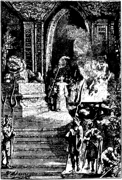 Диву даешься, сколько там покоев, просторных и прекрасно устроенных, и никому в свете не выстроить и не устроить покоев лучше этих. А крыша красная, зеленая, голубая, желтая, всех цветов, тонко да искусно выложена, блестит, как кристальная, и светится издали, кругом дворца. Крыша эта, знайте, крепкая, выстроена прочно, простоит многие годы.