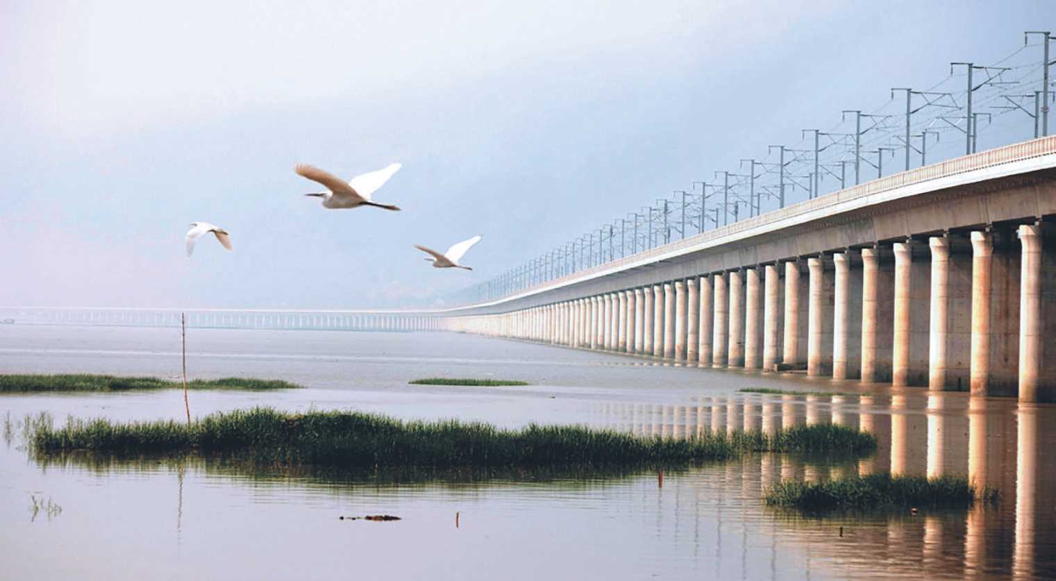 1 августа 2008 года, 10 часов 57 минут, первый китайский моторвагонный поезд с конструкционной скоростью 350 км/ч «Гармония» мчится по междугородной железной дороге Пекин – Тяньцзинь по большому мосту Янцунь по территории Тяньцзиня. Это еще одна знаменательная веха в истории строительства железных дорог в Китае (фото: Юань Жуйлунь)