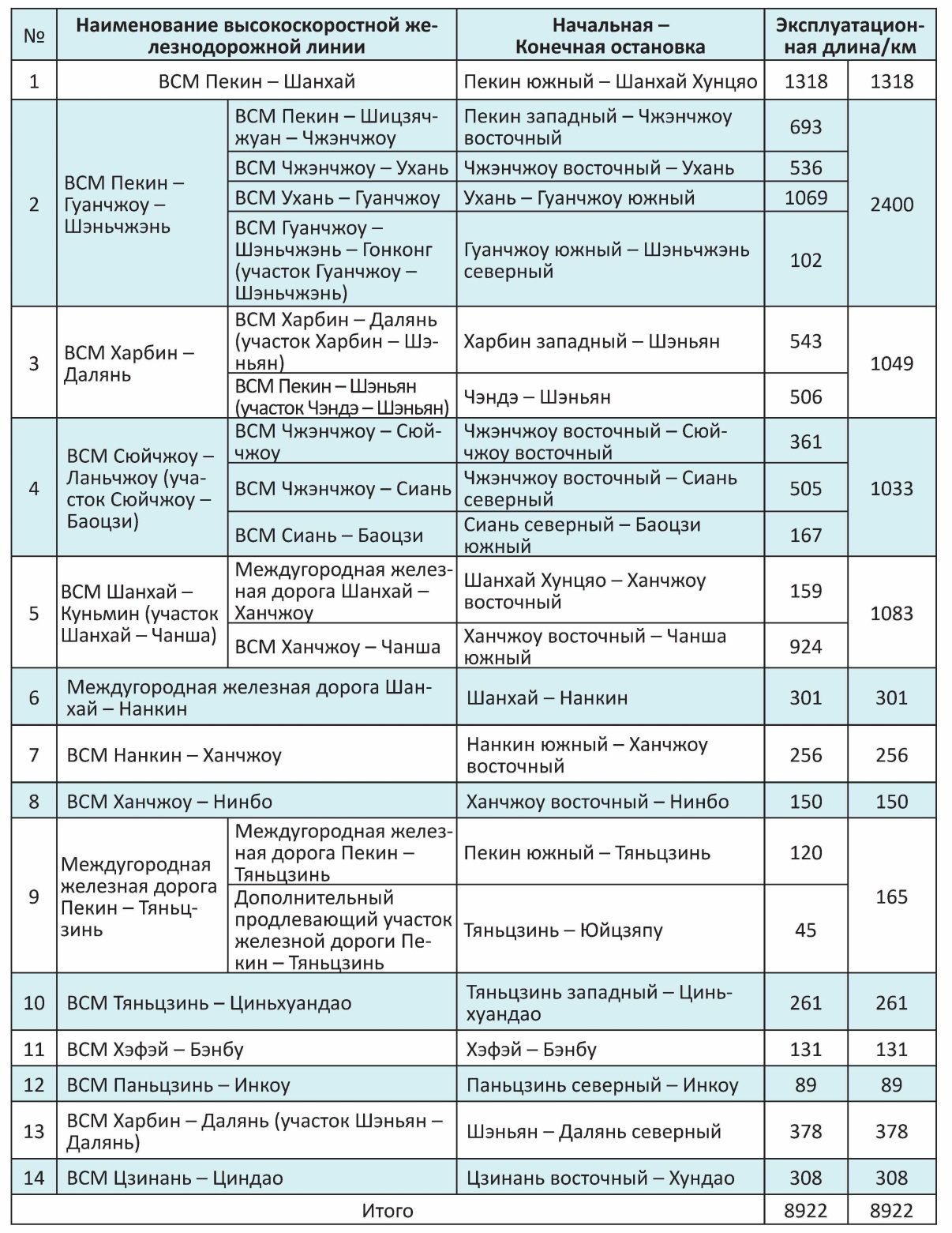 2.2. Какова эксплуатационная длина китайских высокоскоростных железных дорог?