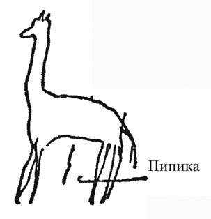 Я рисую Гансу, который в последнее время часто бывал в Шёнбрунне, жирафа. Он говорит мне: «Нарисуй же и пипику». Я в ответ: «Пририсуй ее сам». Тогда он добавляет к изображению жирафа следующую линию (рис. 1), которую сначала делает короткой, а затем чуть удлиняет, замечая: «Пипика длиннее».