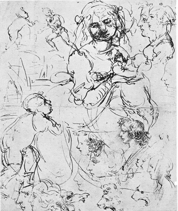 Одаренность Леонардо такова, что ни на одном рисунке мы не сможем отыскать случайную или ошибочную позу, жест или профиль персонажа. Он всегда органичен, точен, сколько бы раз ему не пришлось изображать или копировать исходную модель.