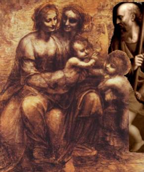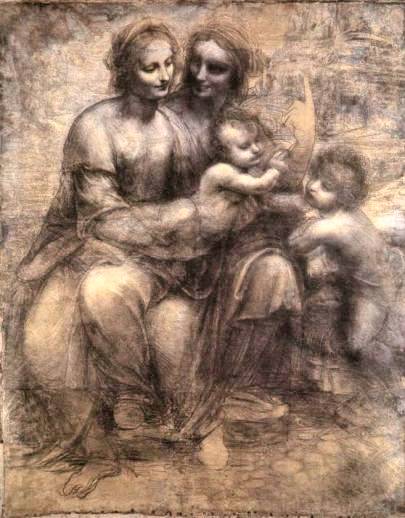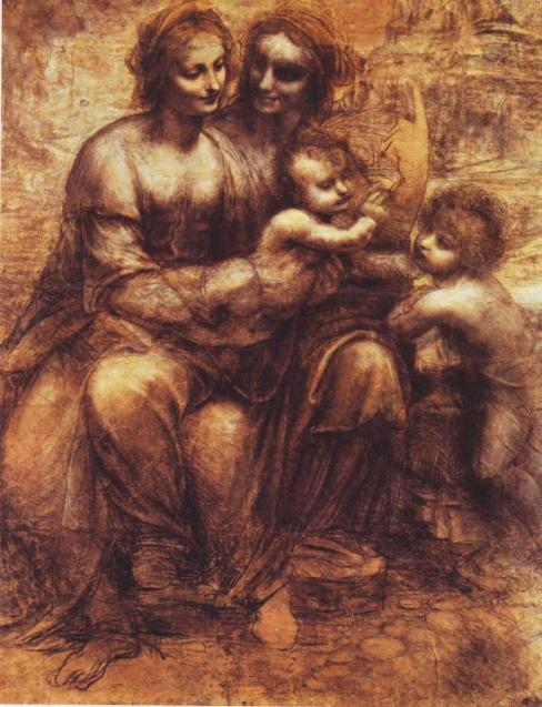 Проработку устройства андрогинного семейства у Леонардо мы видим на рисунке «Святая Анна с Марией, с младенцем Христом и Иоанном Крестителем» из Лондона, исполненном на картоне.