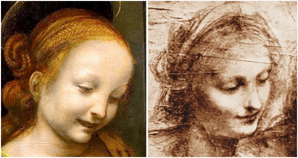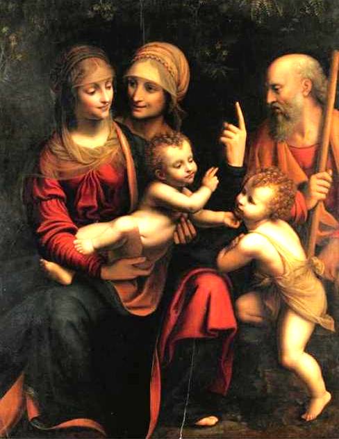 Сравним картон Леонардо с картиной Луини (Bernardino Luini; 1480/1485 – 1532), который был последователем Леонардо.