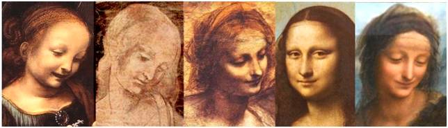 Сходство «Мадонны Бенуа» и мадонны в «…волхвах» (второй слева фрагмент) подсказывает нам, что мадонна в «…волхвах» – это прорисовка тоже раннего периода деторождения все той же Джоконды, когда она была старше отроковицы.