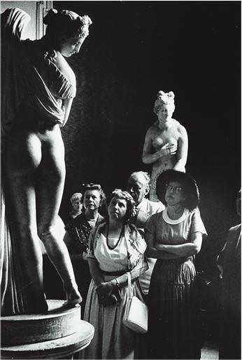 Зрители, осматривающие античную статую в Национальном археологическом музее Неаполя Черно-белая фотография Дэвида Сеймура. 1952