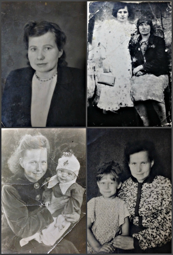 (первое фото): бабушка, Татьяна, отец, мама с Катюшкой