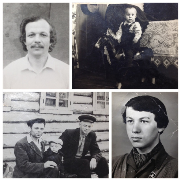 Нижний ряд (слева направо): роддом, где родилась я, все мои братья и младшая сестренка; я на фоне школы, которую построила бригада моего отца и в которую я пошла первый раз в первый класс.