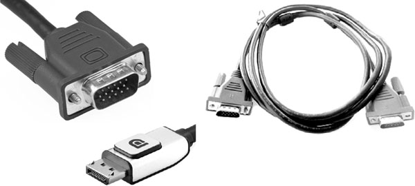 Различные штекеры от монитора, которые нужны для подключения к системному блоку