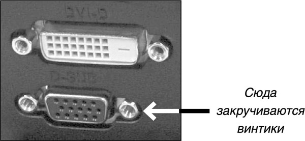 Посмотрите на форму штекера от монитора и найдите на системном блоке подходящий для него разъем (напоминаем, обычно штекер и разъем имеют одинаковый цвет и форму). На нашем рисунке показано, как он выглядит.