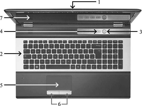 6 – клавиши тачпада, которые заменяют кнопки мыши: левая и правая;