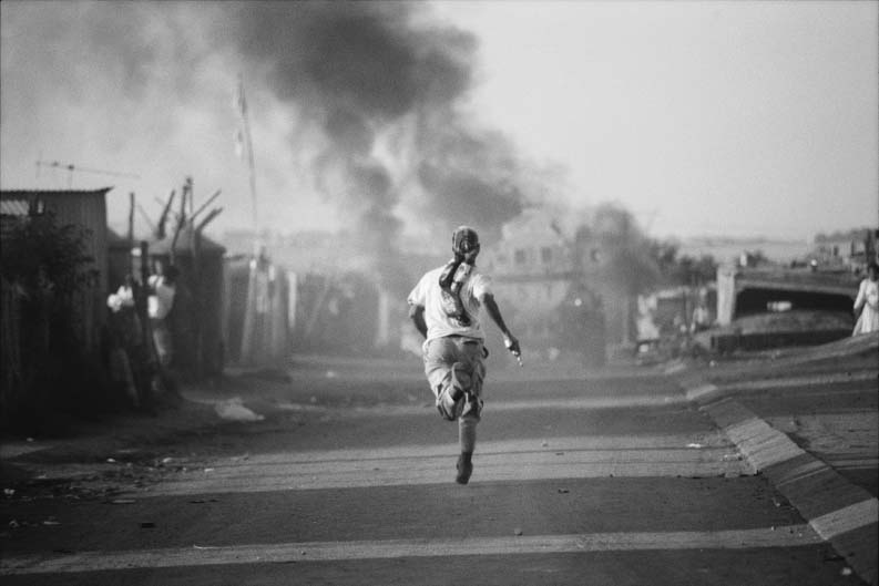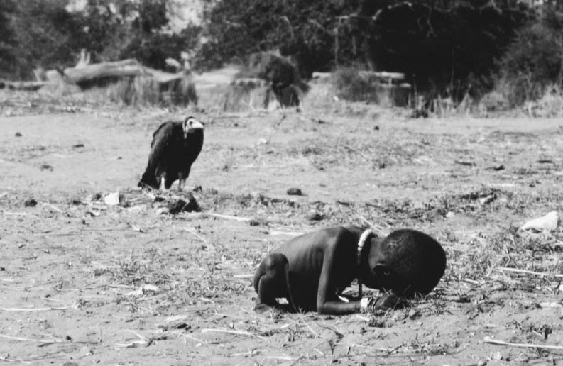 Kevin Carter was the first professional photographer to document a brutal necklacing execution, in which a victim has a gasoline-soaked rubber tire placed around their neck, and the tire is lit on fire. His photo of a Sudanese child emaciated from famine, struggling to walk while a vulture gazes at her from the background, came to symbolize the desperation on the African continent in the 1990s. Carter, a white South African born to liberal parents, was drawn to the racial conflict going on in the black townships of Johannesburg. According to his friends, he empathized deeply with the plight of blacks under apartheid and experienced tremendous guilt for being a white South African. This guilt, combined with his constant exposure to the atrocities that were part of his job, were reportedly major factors that led him to abuse drugs.