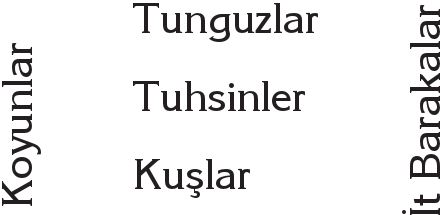 5) Cenuptaki “Yüeçiler” ki sonradan “Kuşan” adını aldılar. Bunların da “Kuşlar” olması mümkündür. Bu surette dört cihete ait totemler, dört cihetteki Türk kavminin isimlerini taşıdıkları gibi, merkezî totem de “umum il”in ismini yani “Tuhsin, Tuzun, Tosun” adını taşımakta idi.