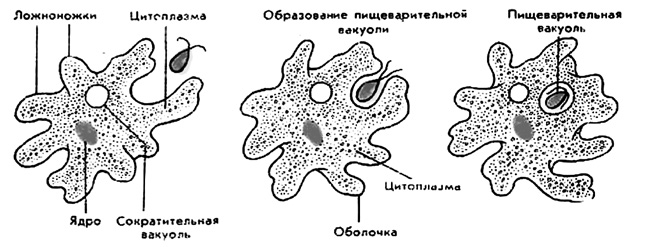 Рис. 1. Питание и движение амебы протеусс