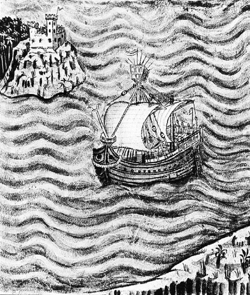 Корабли. Неизвестныйхудожник. «Соленаявода». Ибн-Бутлан «Tacuinum Sanitatis».Casanatense 4182, fol. 23.Ок. XIV в. БиблиотекаCasanatense,Казатаненсе, Рим, Италия