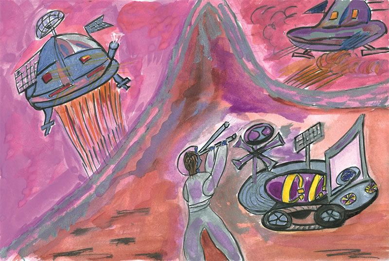 Корабль качнулся в сторону и замер. Вот она, Красная планета! Они благополучно долетели. Но, что это?! Такая тишина, никого и ничего не слышно. Пуэйла поняла, что она спала: – Как я могла заснуть и пропустить посадку корабля. Ведь это мой первый важный полёт.