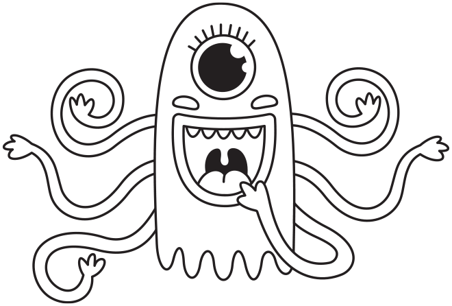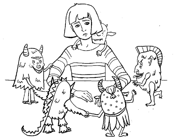 Ночью случилась такая беда, что все кухонные монстры выползли из своих убежищ и столпились под сушилкой для белья. Даже поддверный монстр, узкий, как ремешок, и тот приполз. А ведь ему давно за сто тыщ лет, одной лапой он уже на радуге для монстров. Его уже раза три хоронили, да он обратно приползает каждый раз. У – упорство.